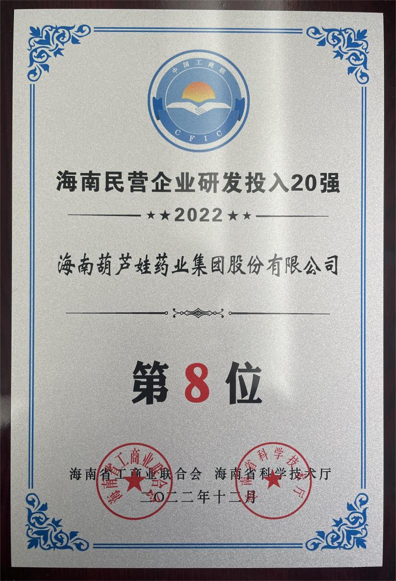 12月23日,2022海南民营企业50强和研发投入20强发布会在海口举行。会上发布了“2022海南民营企业50强”“2022海南民营企业研发投入20强”榜单和分析报告。BG真人药业再次荣登两榜,在海南民营企业50强榜单中位列第25位,较去年上升8位,这也是公司连续三年登榜;在海南民营企业研发投入20强中位列第8位,较去年上升7位。