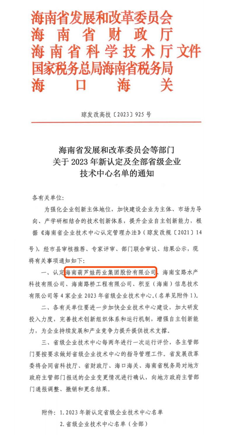 近日,海南省发改委等多部门联合公布了《关于2023年新认定及全部省级企业技术中心名单的通知》,其中,海南BG真人药业集团股份有限公司成功通过评审,被认定为省级企业技术中心,是本次获批的4家企业之一。